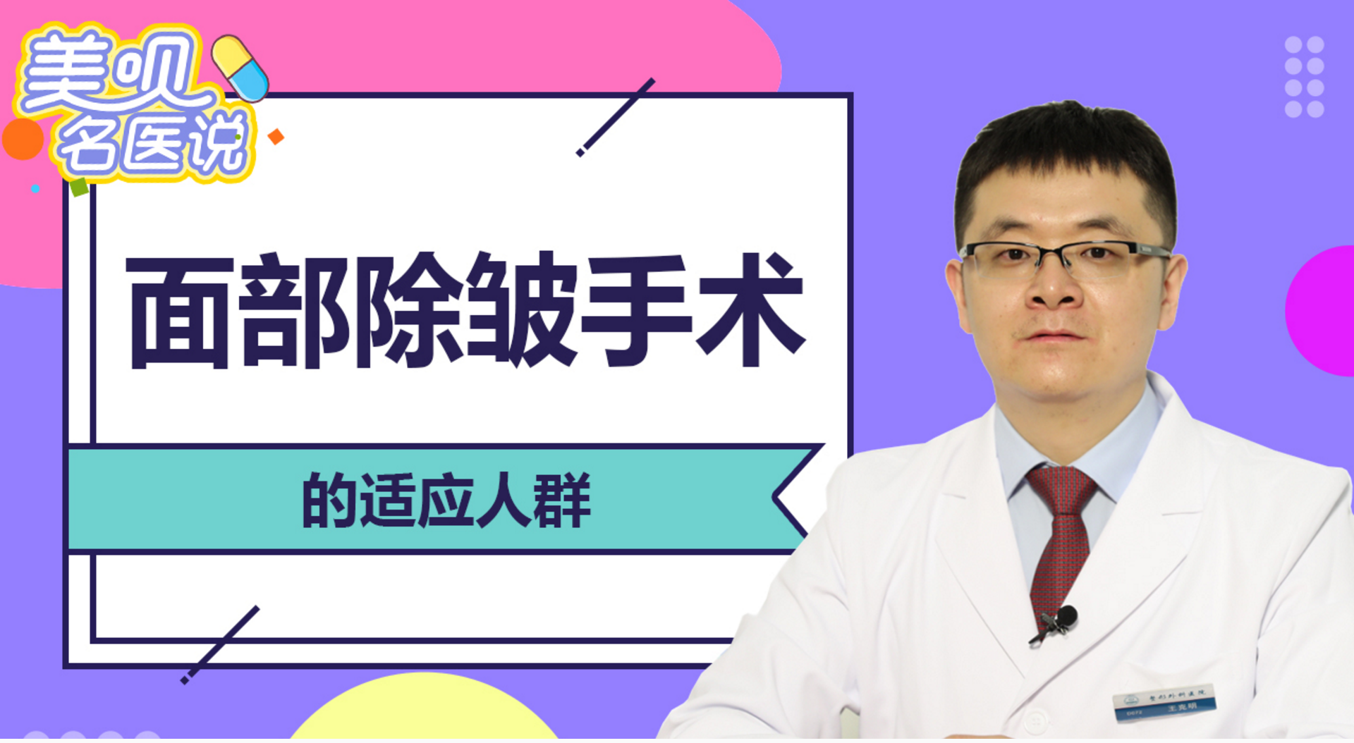 糟糕啦~ 您的浏览器暂不支持播放此视频哦~ 名医提示:从35岁到60岁以上的人群,都属于面部除皱手术适用人群,对于不