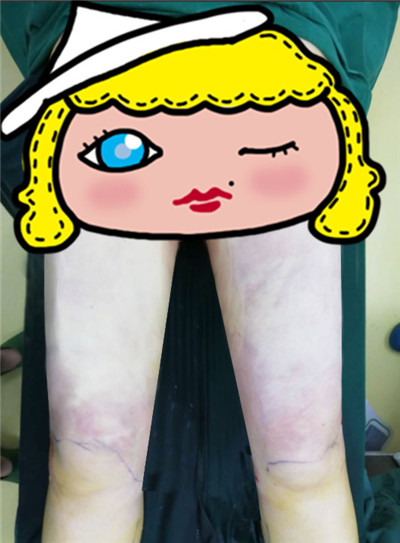 做吸脂之前我还查了各种资料啊之类的,看到过有些人做吸脂没做好那个皮肤就凹凸不平的可难看了。做之前很怕碰到这样的情况,不过现在看来我吸完脂以后还是平整的,跟我之前的腿没啥区别,要说区别就是瘦了很多,我这样的还是挺成功的吧。为了恢复更好一点,继续我的塑身裤之路。